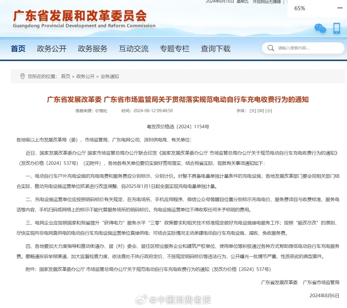 【明码标价!#广东规范电动自行车充电收费#】近日,广东省发展改革委、广东省市场监管局发布《关于贯彻落实规范电动自行车充电收费行为的通知》,明确提出电动自行车户外充电设施的充电电费和服务费应分别标示、分别计价,自2025年1月1日起全面实现充电电量单独计量。