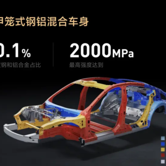 得益于小米SU7因为独特的设计,A柱前的车身要比一般的车要长一些,不仅美观,从安全角度出发,缓冲区间更大,而且小米在在A柱、B柱、地板梁等关键部位的地方用上了高达2000MPa的超高强度钢,高强度钢和铝合金的占比达到了90.1%,安全系数也是唯一获3G+及A评级的轿车。